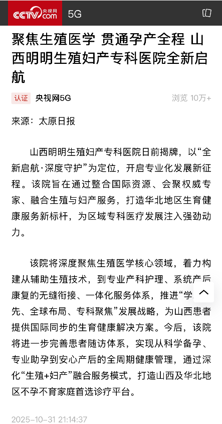 聚焦生殖医学 贯通孕产全程 山西明明生殖妇产专科医院全新启航