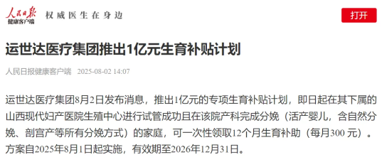运世达亿元生育补贴落地山西!明明生殖启航,首席专家团领衔助孕